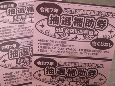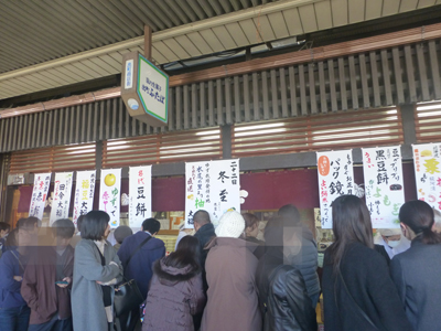買ったのは、冬至餅2つ、豆餅1つと栗赤飯1つをそれぞれ自分用と贈呈用。合わせて4020円。抽選補助券8枚もらった。期間中の28日までにまた来ることはないので、あと2枚もらうため、1000円以上の昼食を商店街でとろうと決めた。 |