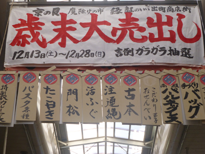 「歳末大売出し」の垂れ幕。手書きであるのが下町っぽい感じ。 |