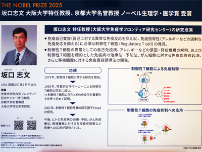生理学・医学賞、坂口志文さんの業績展示。 |