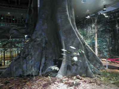 熱帯林を再現した展示。ブルネイの南側に隣接するマレーシア領に研究拠点の森林があり、そこでの研究の紹介。 |