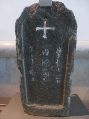 1610年のキリシタン墓。京都の延命寺にあったとのことだが、隠していたのだろうか。キリシタン墓は数点あった。 |