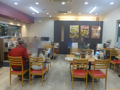 店内。テーブルが6つ、1人客もテーブル1つを使わせてくれていたので、待ち人数のわりに時間がかかったが、そのほうがいいのでやむを得ない。 |