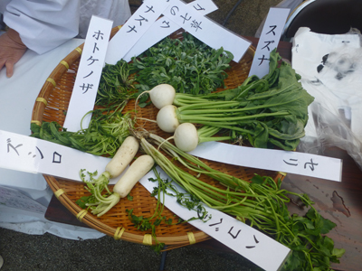春の七草。はこべ、すずしろ、せり、ほとけのざ、すずな、なずな、ごぎょう。 |