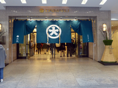 46系統の停まる四条高倉バス停の真ん前に大丸の玄関がある。門松とのれんが正月らしい雰囲気を出している。 |