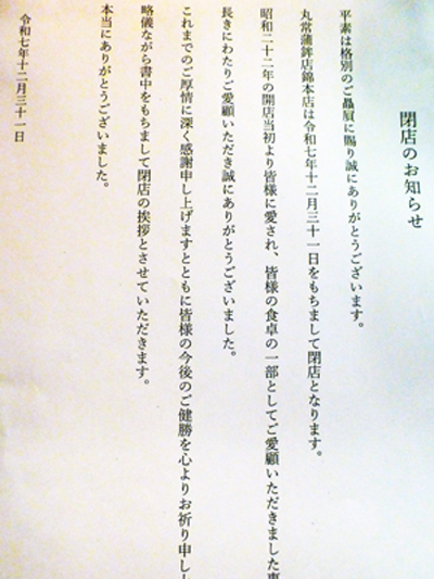 この蒲鉾店は昭和22年から78年間、営業してきたが、昨年の大みそかで営業を終えた。 |