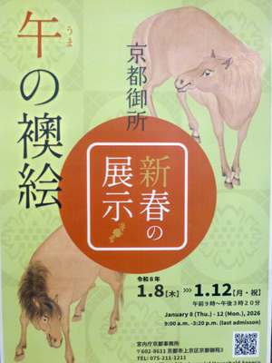午(うま)の襖絵の展示のポスター。下 京都御所の北西隅。 |