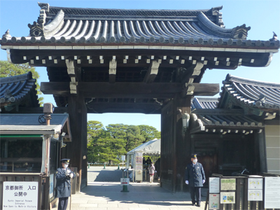 京都御所を退出し、京都御苑内を散策しながら下る。 |
