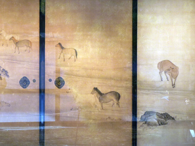最初に向かったのは、お目当てである襖絵"牧馬"。ガラス越しなので撮影はしにくい。 |