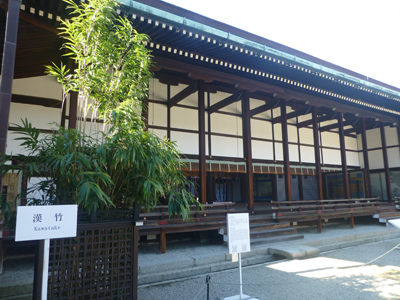 小御所。中世からあり、武家との対面などで使われた。明治維新のさい、将軍に対する処置を決めた小御所会議で有名。1954年に火災があり、1958年に復元された。 |