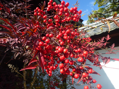 御学問所そばでは、なんてんがきれいだった。 |