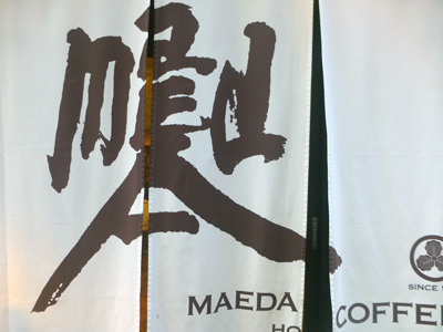 入口ののれんの文字は漢字に見えるが、よく見ればmaEdAをデザインしたものだとわかる。 |