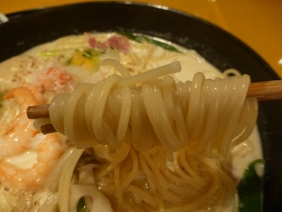 麺はさっと茹でた食感で、よくある茹ですぎではない。お箸で食べる店のようで、ナポリタンやぺペロンなど代表的なスパゲティがそろっているが、そういったものもお箸で食べるのも特徴。 |