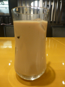 飲物はアイスカフェオーレ。大盛にしたので、満腹。 |