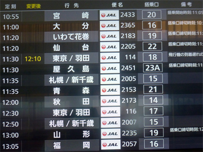 搭乗するのは、11時35分発、JL2005新千歳行き。 |