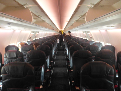 搭乗。GROUP1、2の列は十数人で、羽田便のように多くはない。 |