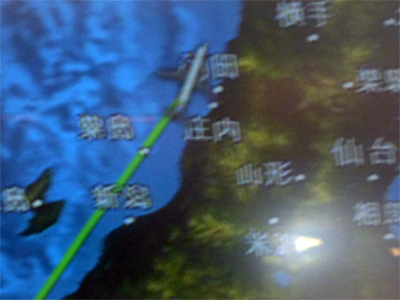 日本海側を北上するルート。つり下げ式モニターで撮影しにくかった。 |