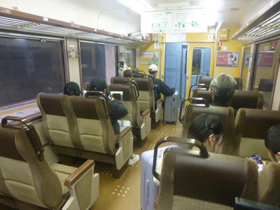 「エアポート」には、全車クロスシートの古い電車と指定席だけクロスで他はロングシートの新しい電車があるが、全車クロスの電車だった。 |