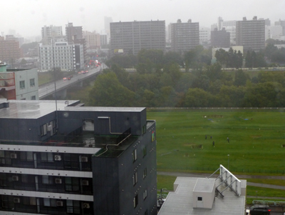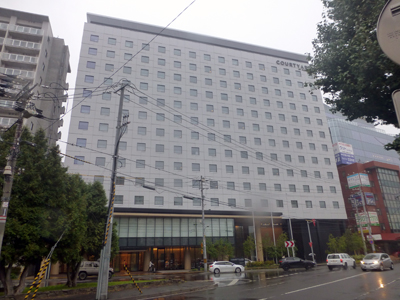 大通で南北線に乗り換え、中島公園で下車。雨で200mほどだが、傘をさす。16時前、5泊するコートヤード札幌に到着。チェックイン。予約していた部屋をUGし、デラックスにしたという。 |