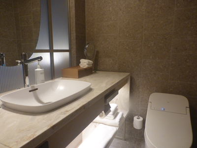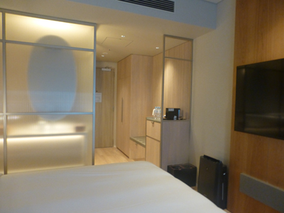 窓側から入口側を見る。左端の明るい部分は洗面台で、すりガラスになっている。UGといっても、スーペリアとデラックスの違いは2500円ほどで、どこが違うんだろうかって感じ。 |