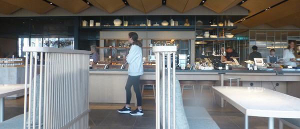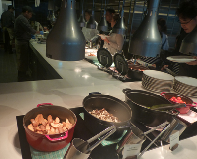 上 案内された席からの眺め。左 ビュッフェ。 |