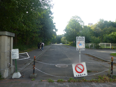 正門は、地下鉄・さっぽろと北12条の中間くらいだが、これから向かう総合博物館やポプラ並木は、北12条駅から少し下った北11条通りにある入口が便利。入口といっても、ここは門はなく、単に入れるようになっているだけ。 |