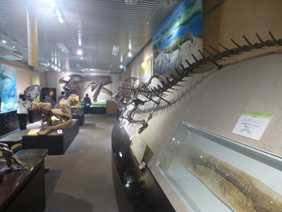 こちらは特色ある研究の部分。ここは恐竜の骨格を展示している。全体的には理学部に関係するような研究の展示が多い印象。 |