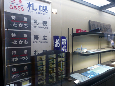 特急の方向幕や記念切符なども展示。 |
