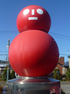 赤い雪だるまもあり、台座に「雪ダルマ郵便小包 発祥の地」とある。郵便小包がゆうパックになって久しいが、それ以前の碑だ。雪だるま型の発泡スチロールに雪をつめて発送したらしい。しかし、2018年の胆振地震で中止になったきり、復活していないという。 |