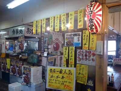 代わりにやってきたのは、海の駅・ぷらっとみなと市場。建物内に、たくさんの食堂が並んでいる。 |