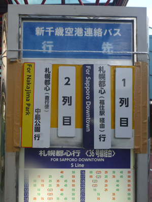 night`sさん、ありがとうございました。鉄道やバスでは行きにくいところへいろいろ行け、感謝。別れたあと、空港内の売店で土産を買うなど、1時間ほど滞在。16時20分発の、札幌駅までほぼノンストップの中島公園行きの空港バスがあり、乗車した。 |