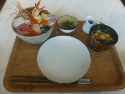 海鮮丼を拡大。かなり豪華な海鮮丼で満足。前日まで気づかなったのかと思っていたが、聞けばこの日から始めたとのこと。 |