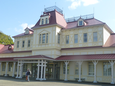 開拓の村の入口として使われている建物は、初代・札幌駅を復原したもの。開拓の村は、2回目の訪問だが、40年ぶりで、前回は、雪が積もっていて冬だったこと以外、何も覚えていない。 |