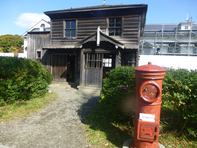 島歌郵便局。局舎だけで、居住部分は別にあったという。ポストに手紙をどのように入れるのだろうか。 |