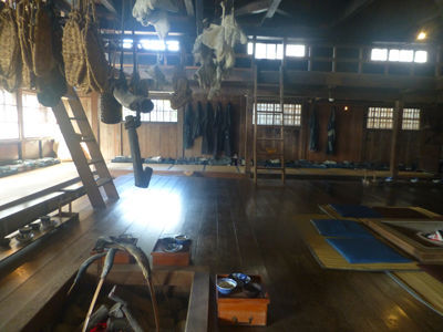 寮の部屋の再現。下 札幌師範学校武道場。板敷の剣道場と畳敷の柔道場にわかれていた。手前の支度室は展示がされていた。 |