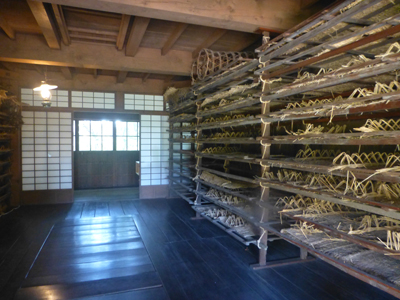 田村家の内部。先進的だった大きな養蚕農家。 |
