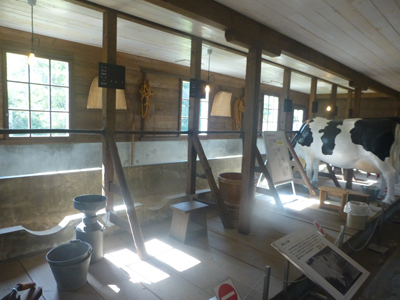 小川家酪農畜舎。札幌農学校出身者が大正末期に建てたものだが、畜舎は現代風。札幌市清田区にあったとのことで、札幌にもサイロをもつ畜舎があったのが驚き。 |