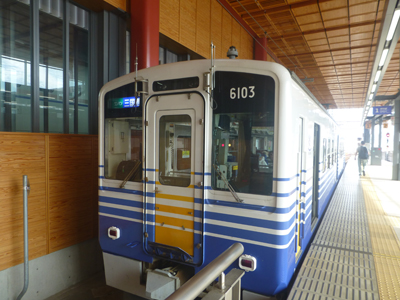 この日は、朝食(写真省略)のあと、東尋坊、三国湊街歩き。芦原温泉入浴の予定。東尋坊と芦原温泉は4、5回行ったが、三国湊は立ち寄ってない。45〜50年前、当時は京福だった電車で三国港まで往復したが、すぐ折り返し、三国湊の散策はしていない。 前日も行ったえちぜん鉄道の福井駅へ。この日は9時9分発、三国港行きに乗車。 |