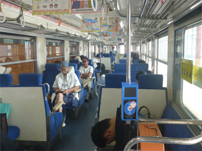 1両で、座席は1人づつ別個のクロスシートで、前日の勝山行きよりも少し新しいタイプだ。 |