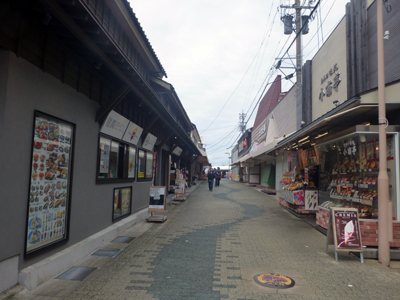 上 12時17分、三国駅着。ここは有人駅。左 三国湊の散策開始。古い建物が並ぶ。(船の停泊する「港」に対し、その背後の街を「湊」と理解している。) 古い建物の多い北前街道を歩く。まず、旧森田銀行本店へ。 |