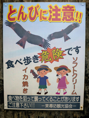 バス停から海岸へは下り坂だったが、バス停へは上り。土産物店街を歩く。下左 とんびが悪さをするらしい。困ったものだ。自分が悪さしているようで、悩ましい。 下右 東尋坊バス停から12時17分発のバスで三国駅へ向かう。 |