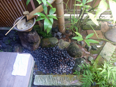 黒い砂利の下には水琴窟がある。でも、音はよくわからなかった。 |