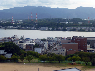 展望バルコニーからの眺め。三国駅に戻り、16時11分発の福井行きであわら湯のまちに向かう。 |