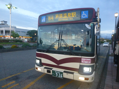 17時53分、あわら湯のまち発の芦原温泉駅行きに乗車。このバス、セントピアあわら前に停車し、わずか10円だが、そのほうが安かったので、少し失敗。 それでも、えちぜん鉄道よりも、バスとはぴライン利用のほうが少し安いので驚きだ。 |