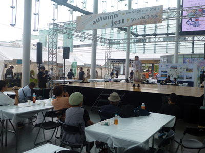 12時ごろ駅前に戻ると、西口広場でオータムフェスタをしていた。屋台食を味わいながら、パフォーマンスを楽しむイベントのようだったが、食べたいものがなく、すぐに退出。 |