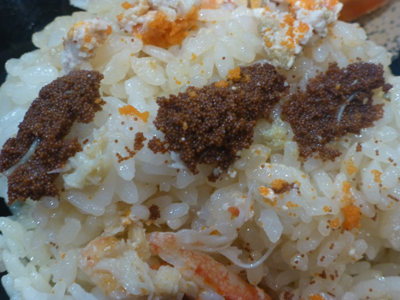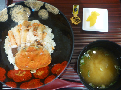 せいこかに丼。せいこかには、ずわいかにのメスで、とれるのは11月から1月。この時期、冷凍ものなんだろうけど、食べたかったので注文。 |