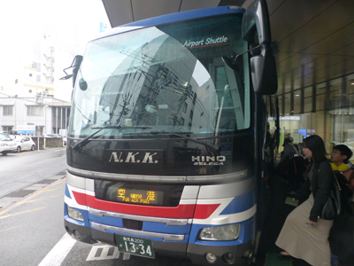 10時、宿からは始発の送迎バスでバスターミナルへ。10分で到着し、15分発の空港バスに飛び乗れた。自分が最後の客で、あとの客は満席で乗れなかった。送迎バスが遅れると、自分も乗れなかったかもしれない。 |