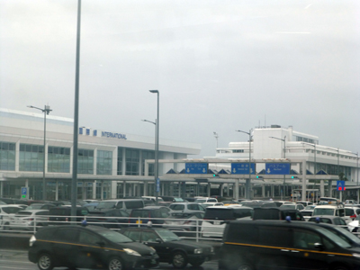 通常なら40分ほどで空港に着くが、高速道路で事故があって、渋滞区間があり、1時間少々かかって空港着。 |