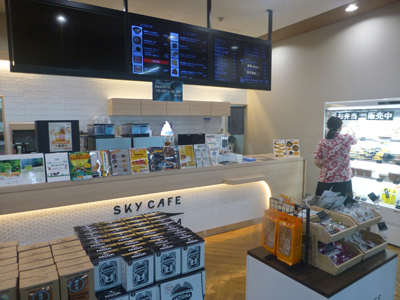 当初は、保安検査場の手前にある、到着時にも利用した山形屋で昼食をとるつもりだったが、空港バスが遅れたので、保安検査場を通ったあとで軽食をとることにした。猿田彦珈琲で簡単な食事ができるようなので入店。 |