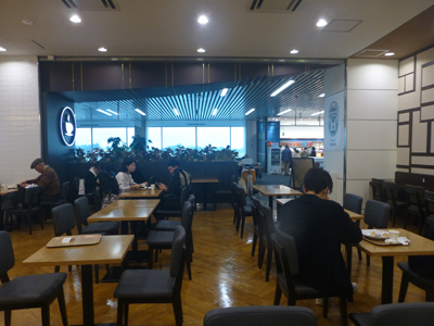 店内。猿田彦珈琲はANA側とJAL側にあるが、ANA側の方がテーブルが多く、メニューも豊富だ。今回はANA側の店舗を利用した。 |