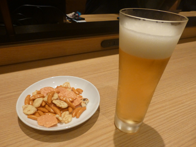 わずかな時間、ビールを飲んで休憩。 |